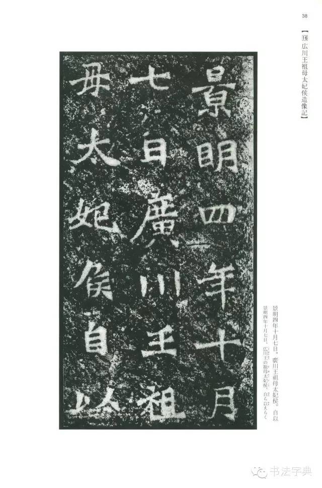 《太妃侯造像记》全称《广川王祖母太妃侯为幼孙造像记》。景明四(503)年七月刻。在古阳洞顶部。正书,29行,前22行一行6字,字较大;后7行,一行4字,字较小。