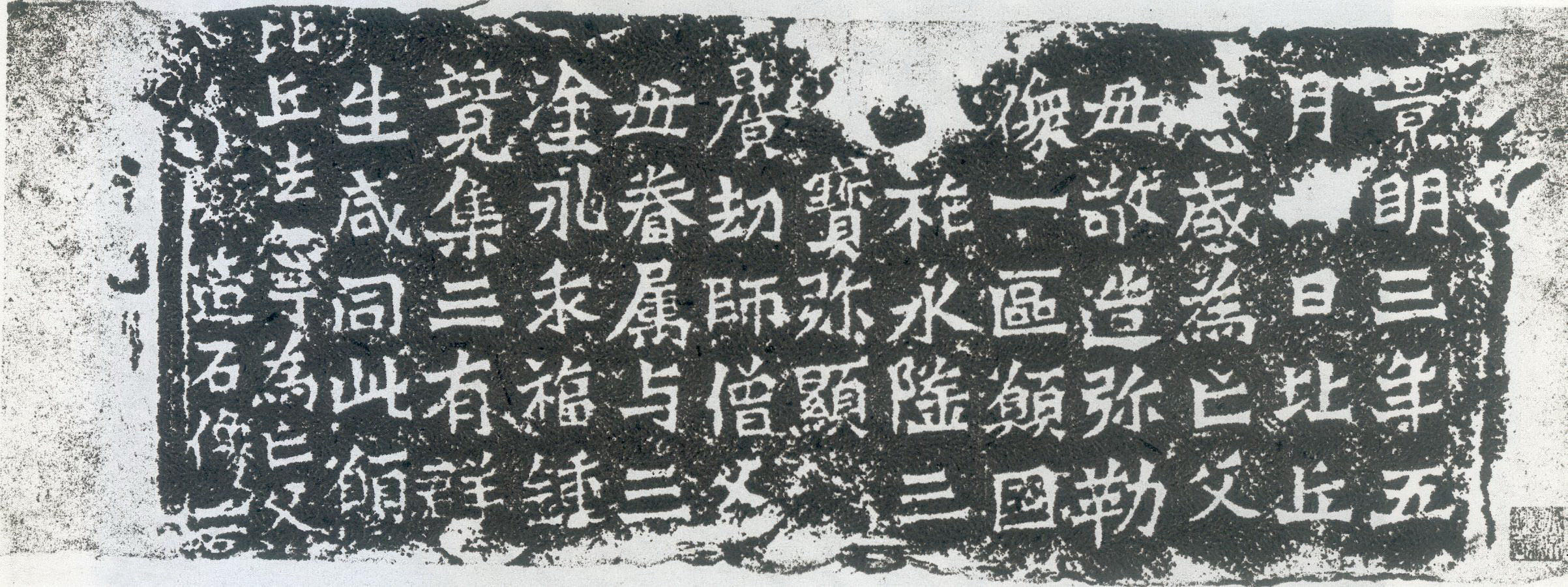 《惠感造像记》又称《比丘惠感为亡父母造像记》、《比丘惠感马为亡父母造像记》,正书,14行,一行5字。可见六十六字,书法沉劲方重,犹存隶意。景明三(502)年五月刻。古阳洞北壁。有翻刻本,第12行‘顾’字左上缺一点;末行‘像’字缺二笔。【原文】景明三年五月三十日,比丘惠感为亡父母敬造弥勒像一区,愿国祚永隆,三宝弥显,旷劫师僧、父母、眷属与三涂永乘,福锺竟集,三有群生,咸同此愿。