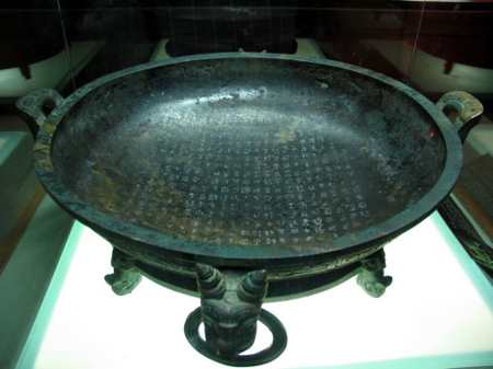 盘内底铸铭文21行,约360字,记载了单氏家族八代人辅佐西周十二位王征战、理政、管治林泽的历史。对西周王室变迁及年代世系有着明确的记载,第一次印证了《史记·周本纪》所记西周诸王名号。