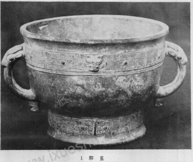圆腹,圈足,半圆形双耳,耳下垂珥,颈前后铸二对称兽头;每个兽头两侧各饰二夔纹,圈足上饰双夔合成的兽面纹,均匀地构成四组图案。器高14.2厘米,口径19.7厘米。器内底铸铭三行,二十字,其中合文二字,铭文由左向右读。章乃器捐献,存于北京故宫博物院。